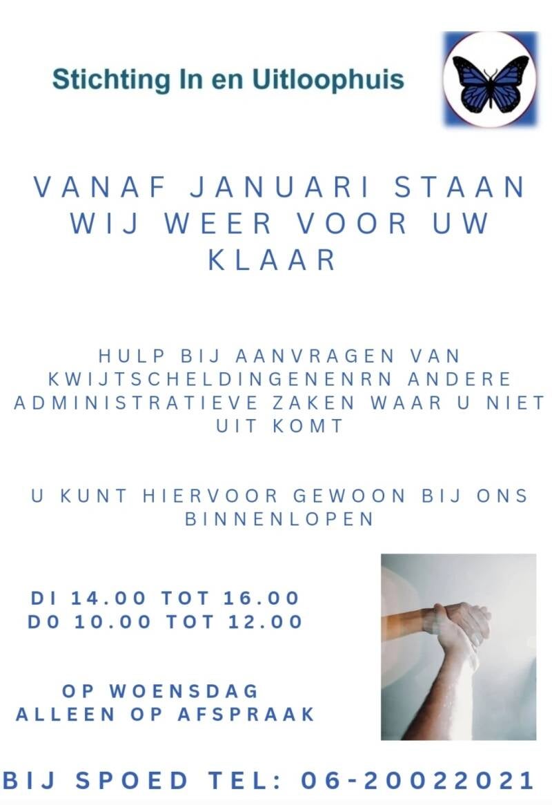 Op woensdag is het In- en Uitloophuis van 14.00 - 16.00 uur enkel geopend op afspraak.